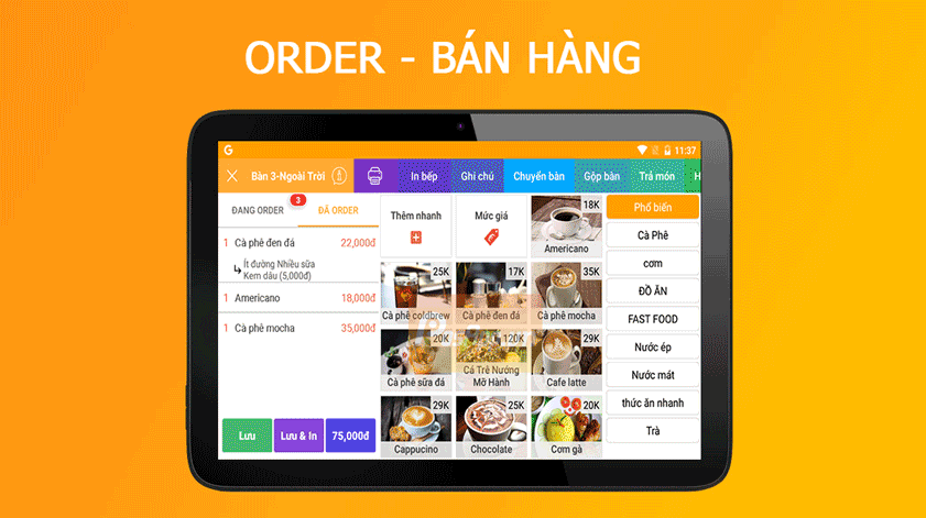 Gọi món nhanh tức thì: mọi thông tin order được chuyển ngay đến khu vực nhà bếp giúp nhân viên không phải chạy tới chạy lui đưa bill cho nhà bếp, giúp quán tiết kiệm được chi phí thuê nhân viên
